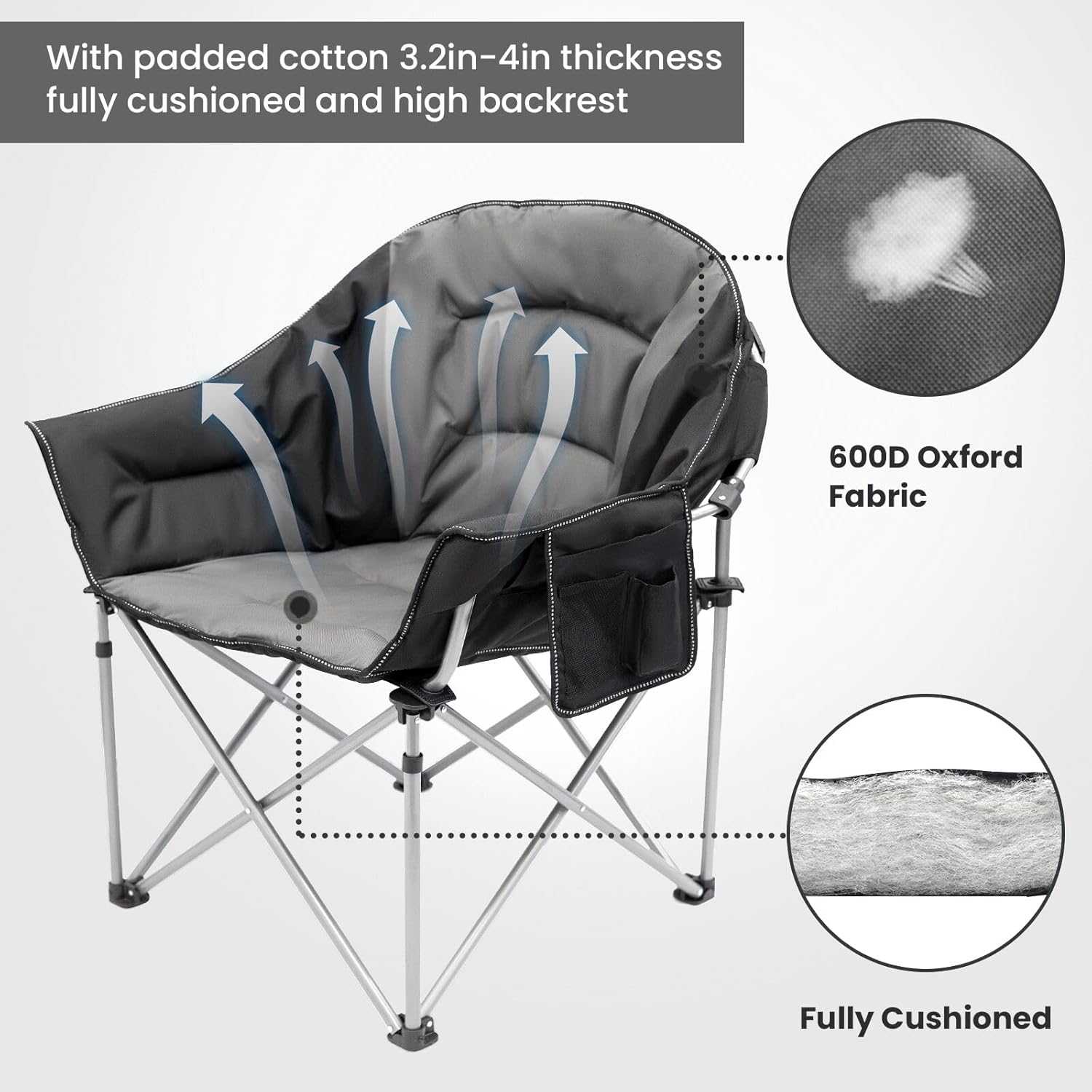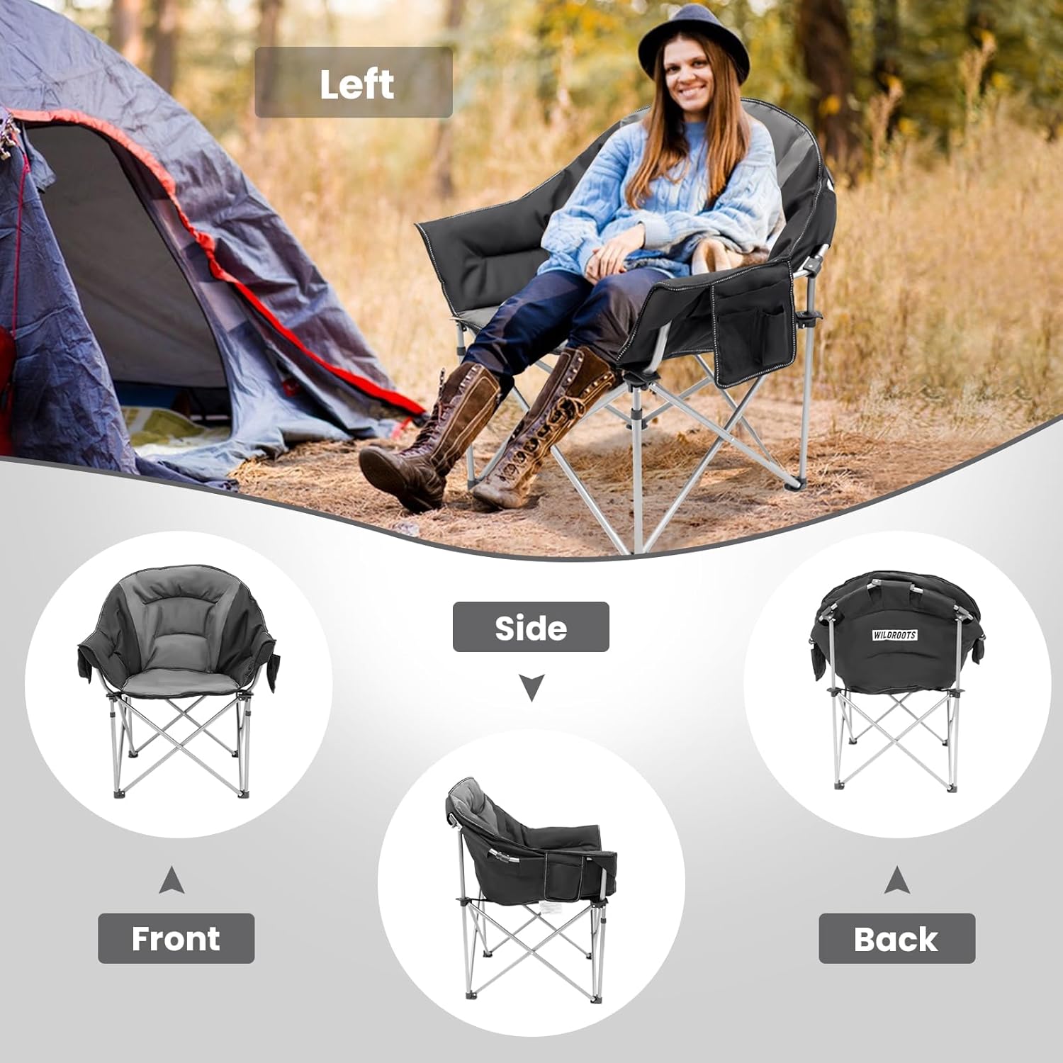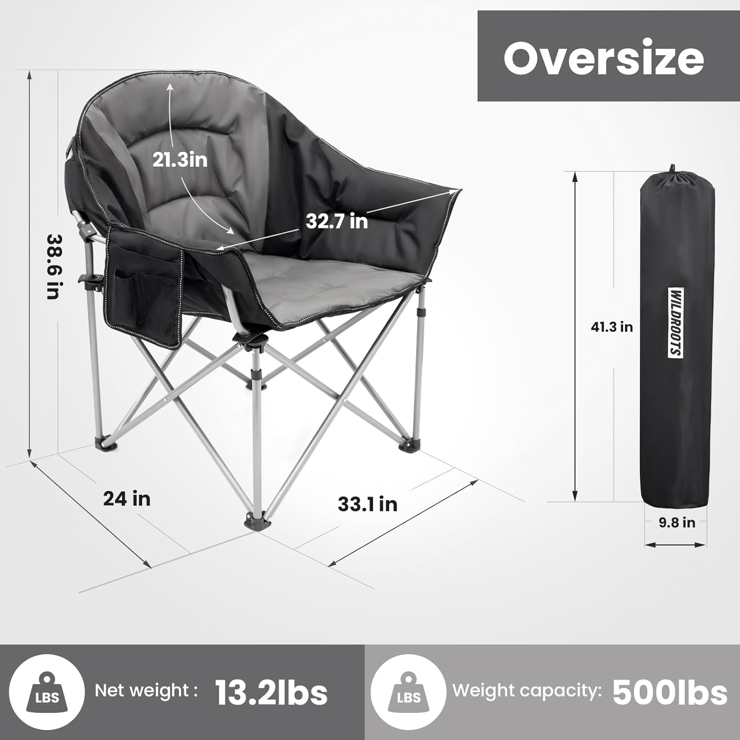 WILDROOTS Oversize XL Fully Padded Warm Chair, 500 LBS Heavy Duty High Back Rest Camping Sofa Chair
